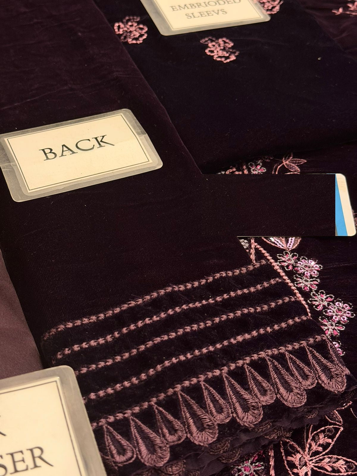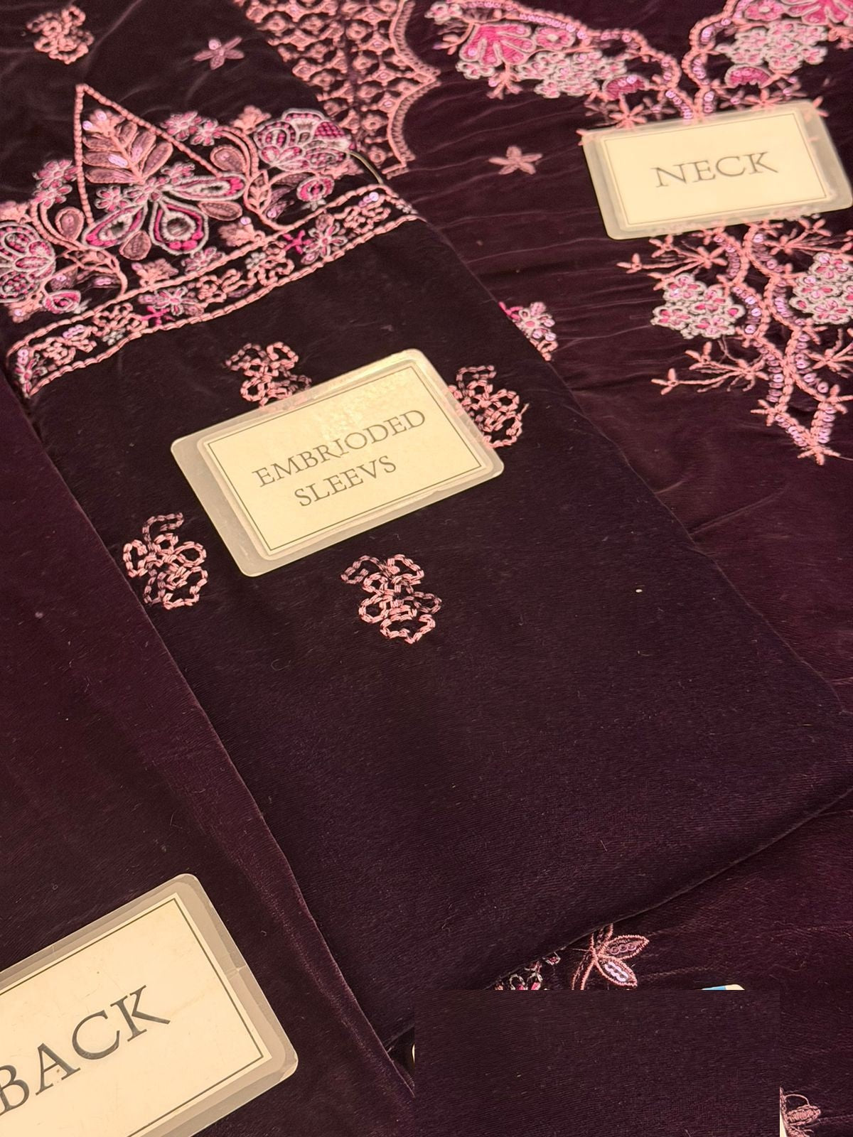 velvet fully heavy alternet embroidered spengle work sleeves with velvet heavy embroidered spengle work sleeves boarder