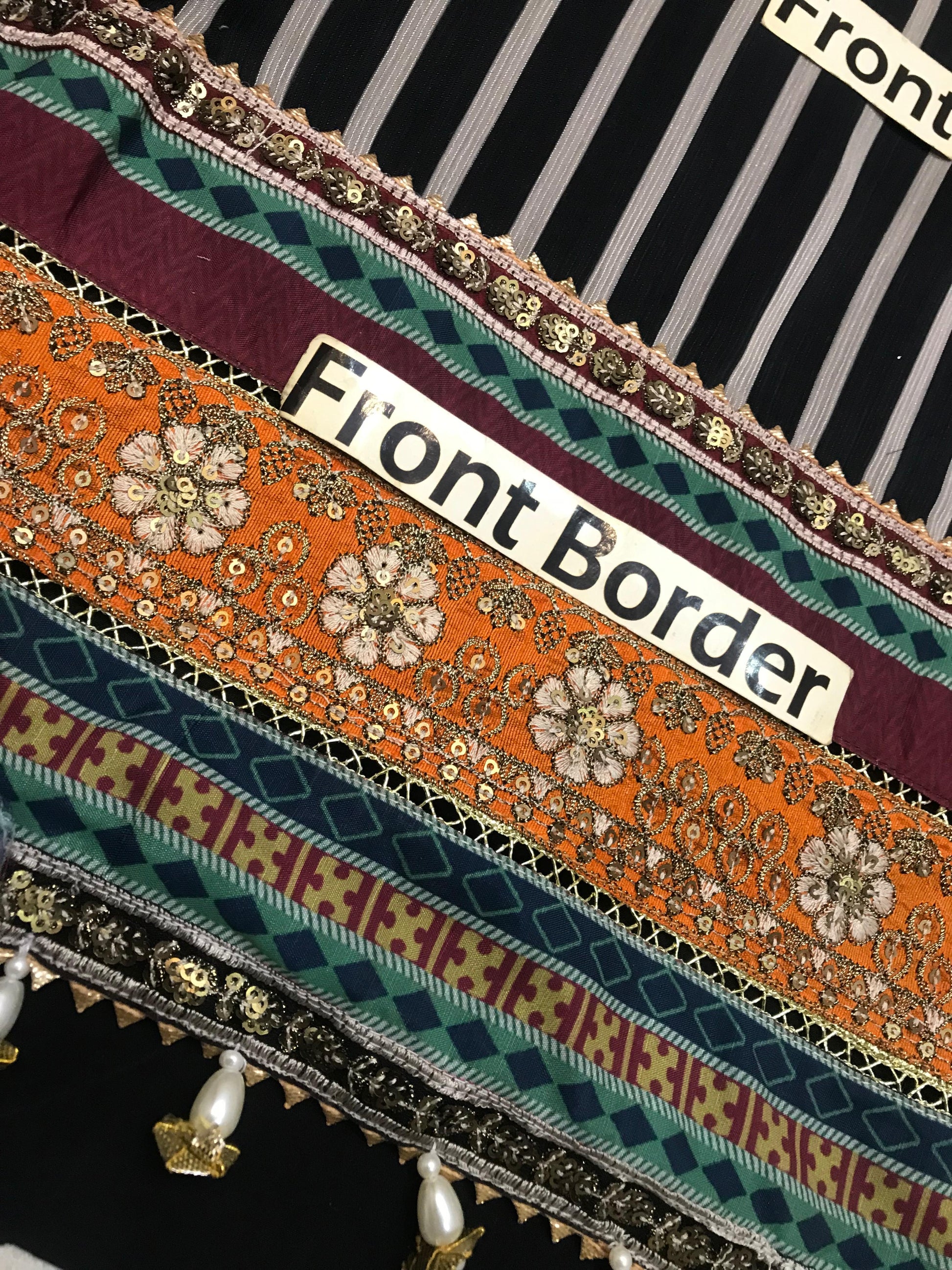 ▪️Heavy Embroidery Front Border on fabric with Hanging Tuselss